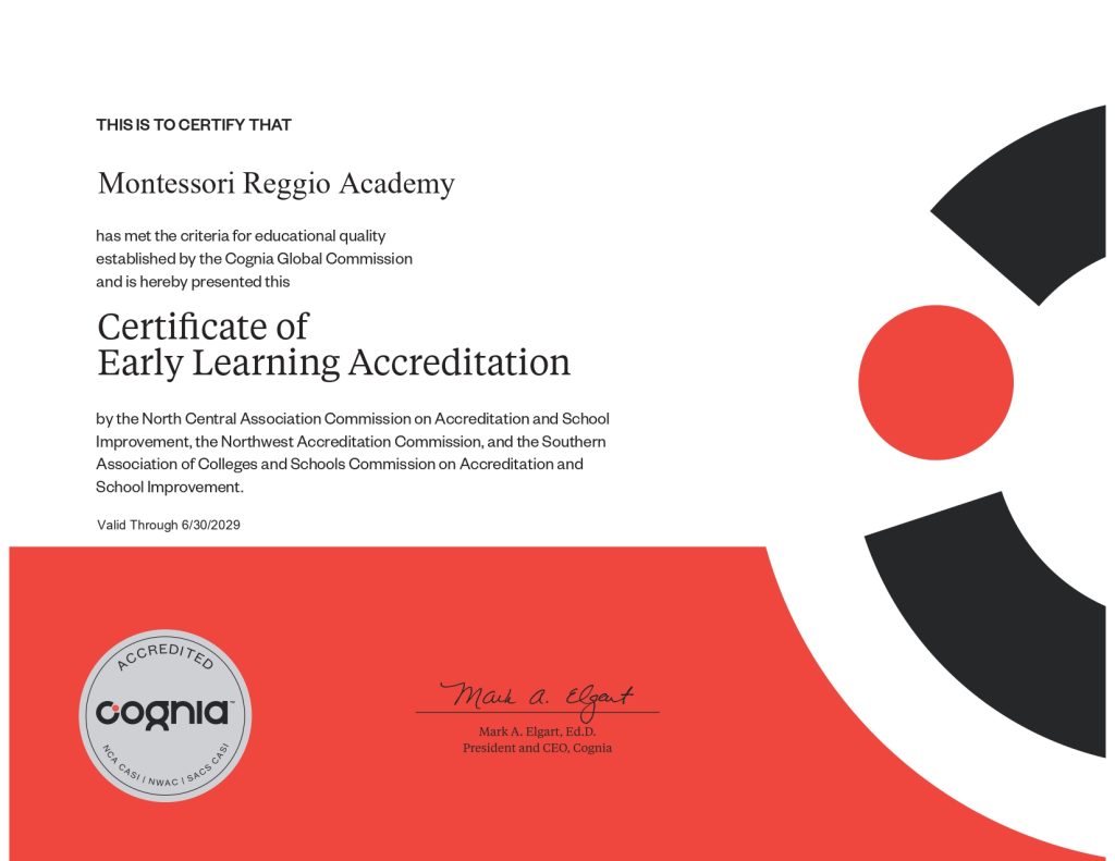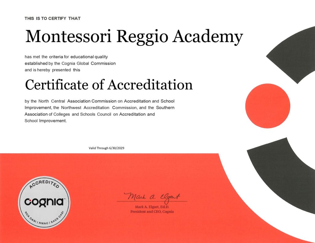 Montessori Reggio Academy has Cognia Accreditation with NCA CASI, NWAC and SACS CASI!